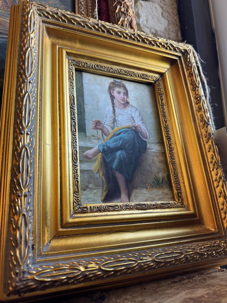 0125 Vintage Oil on Board Painting of Young Girl