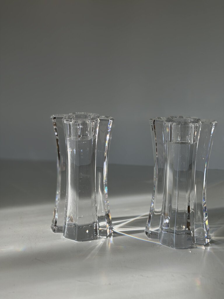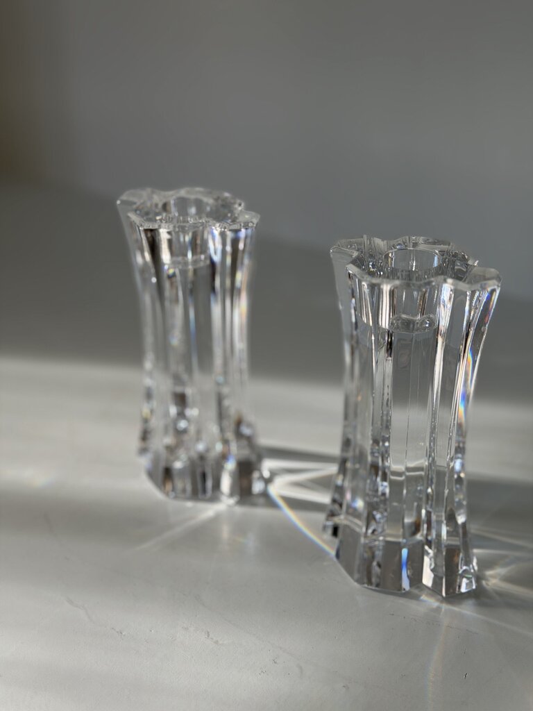 1039 Swedish Orrefors Crystal Candle Holder Pair
