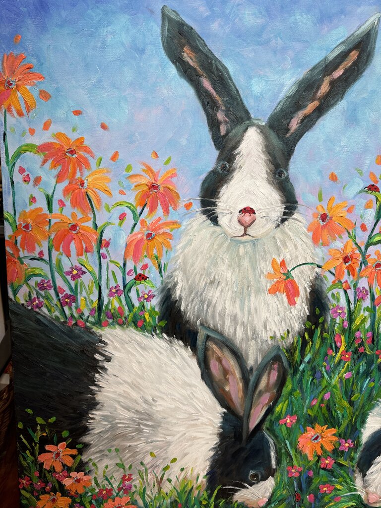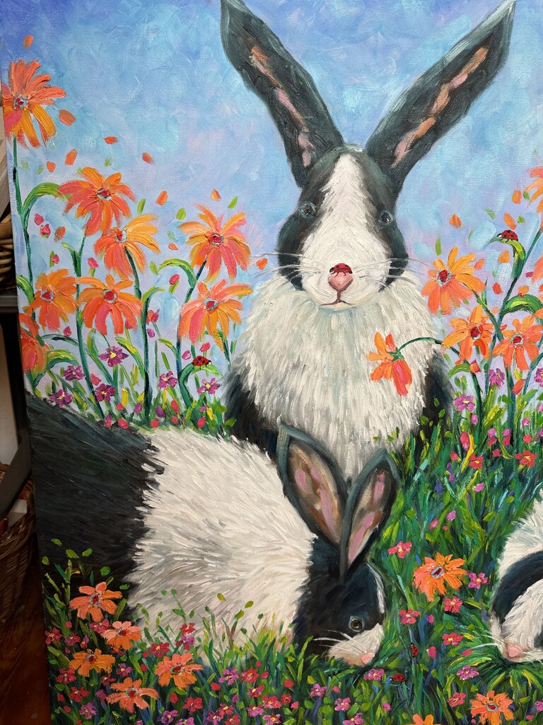 Bunnies acrylic painting signed (40" tall) in store pick up only