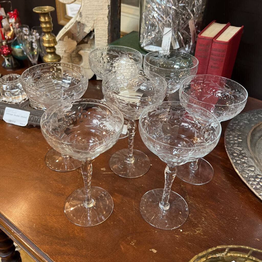 Set of 7 Vintage Libbey Champagne Stemware Glass. Rock Shape crystal 5.25"