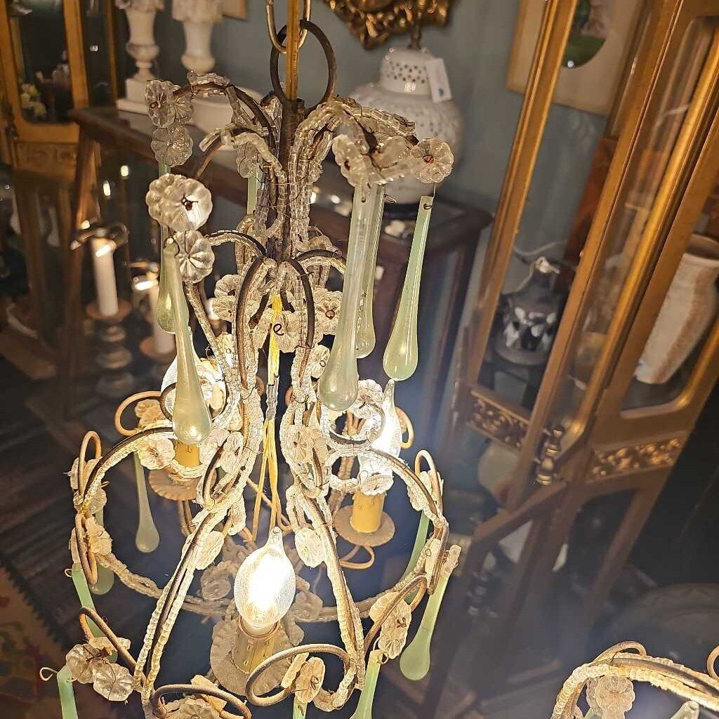 Antique Murano jade drop crystals chandelier