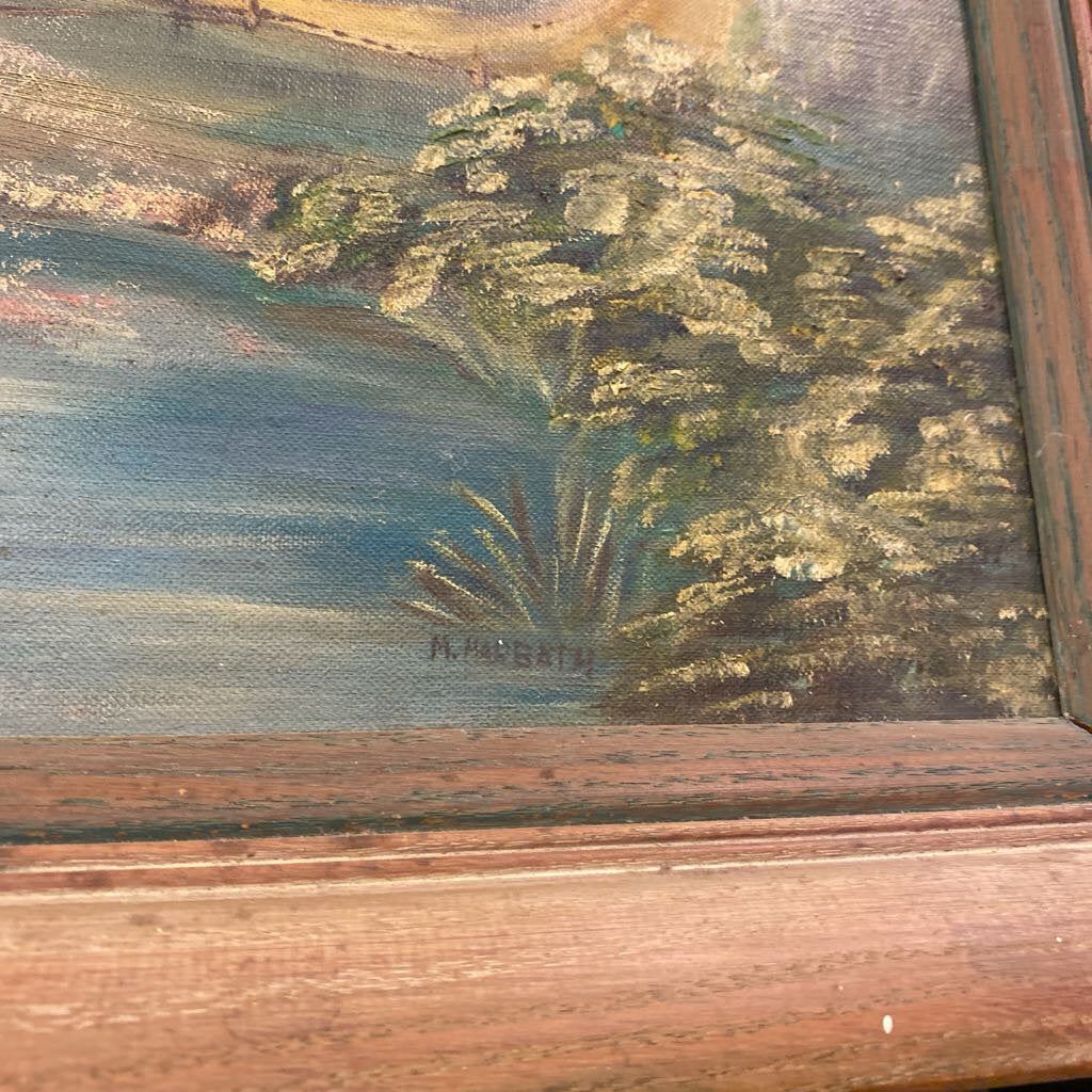 Vintage Serene Rural Landscape Signed Oil Painting 24" x 27"