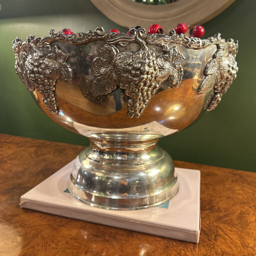 VINTAGE SILVERPLATED PEDESTAL WINE/CHAMPAGNE COOLER W/ PINECONES