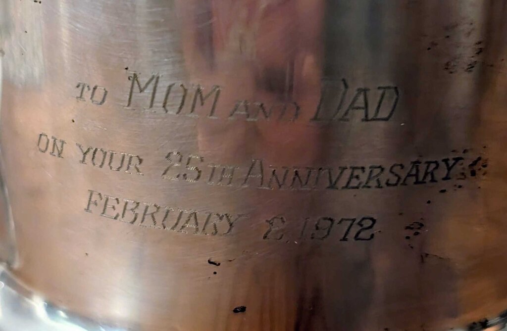 Vintage 1972 Inscribed Anniversary Rogers Silver Trophy-Style Champagne Chiller 10x10