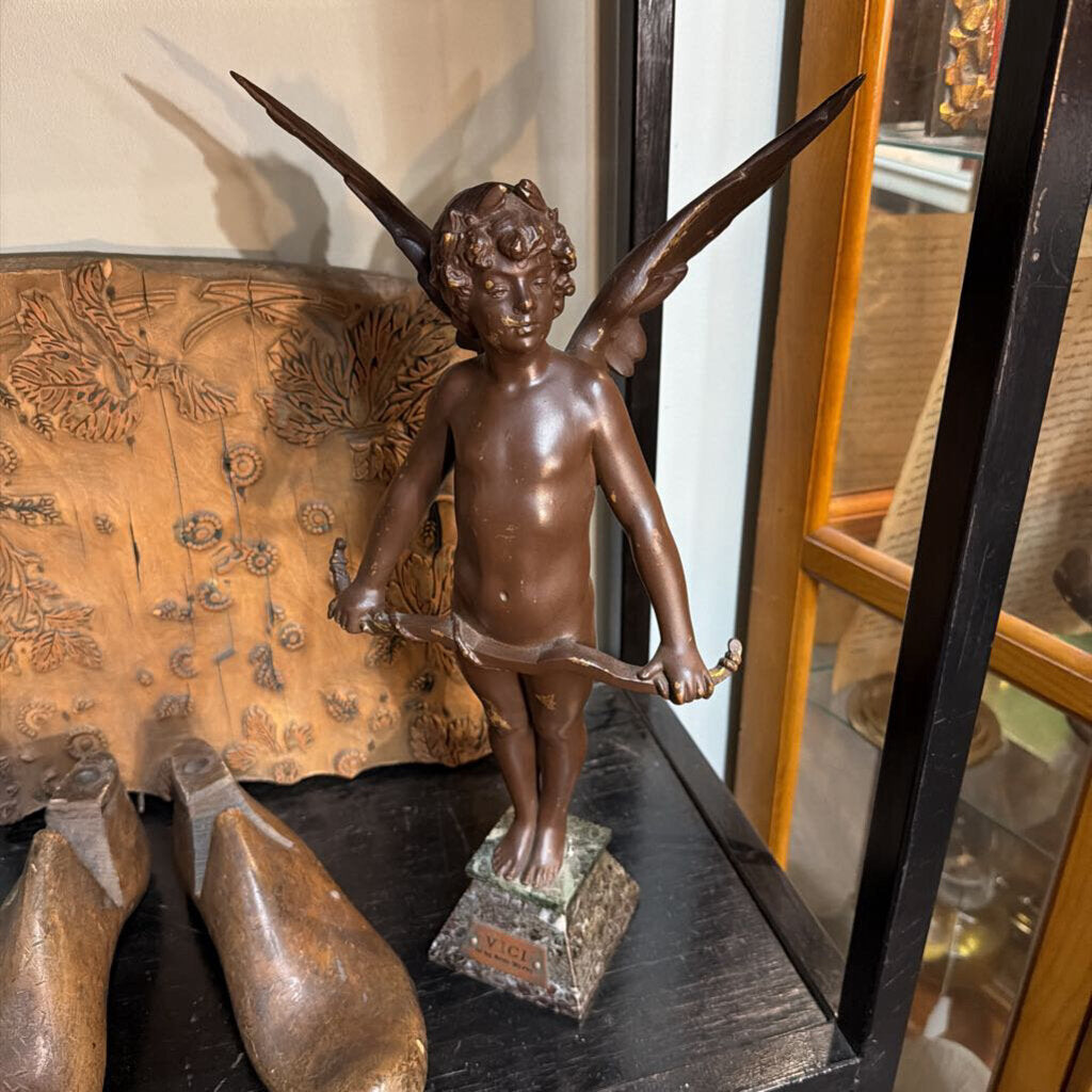 Auguste Louis Moreau (1834 - 1917) French, singed bronze Winged Cupid Sculpture "VICI", 18.5 in. height