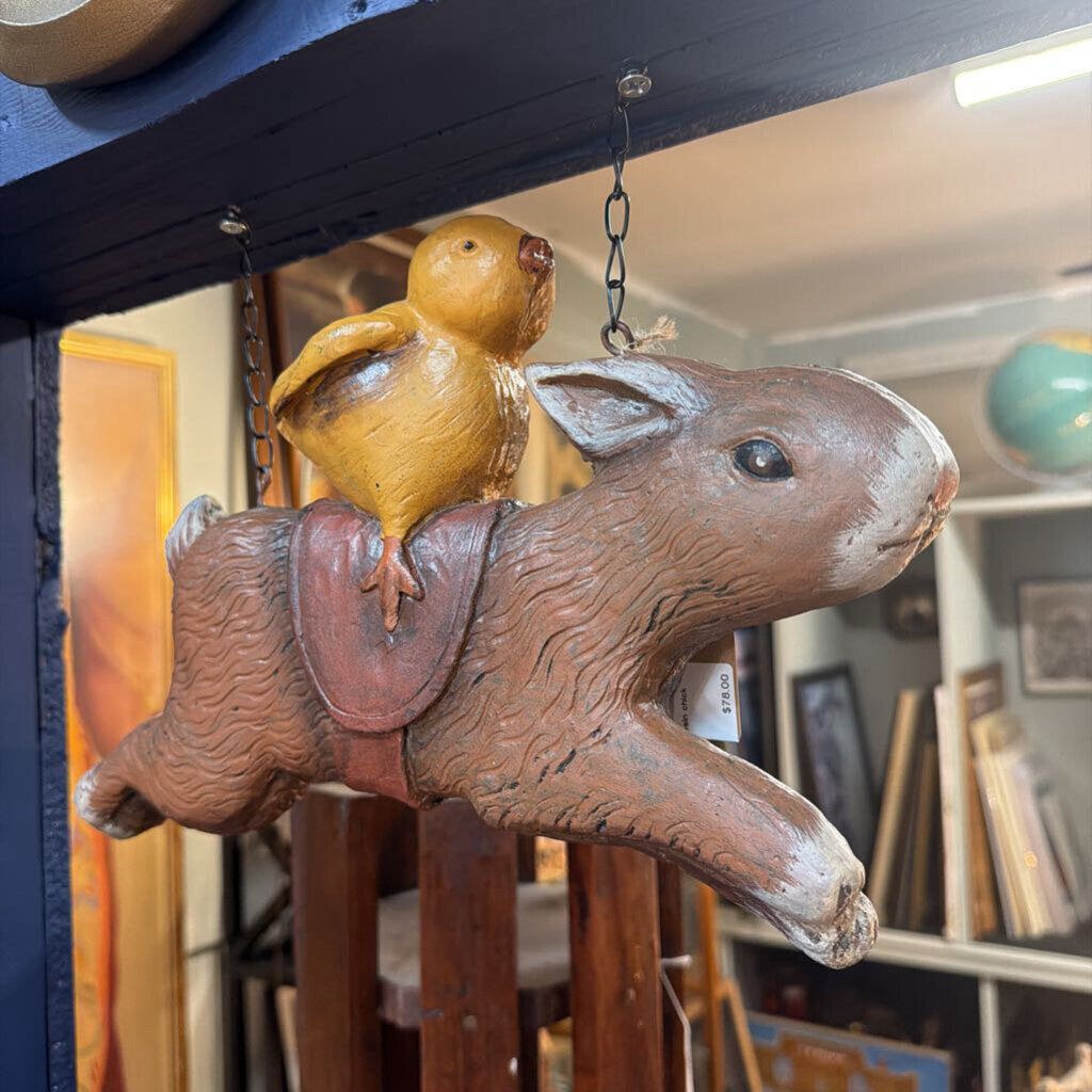 Vintage 3-D painted resin chick riding a rabbit