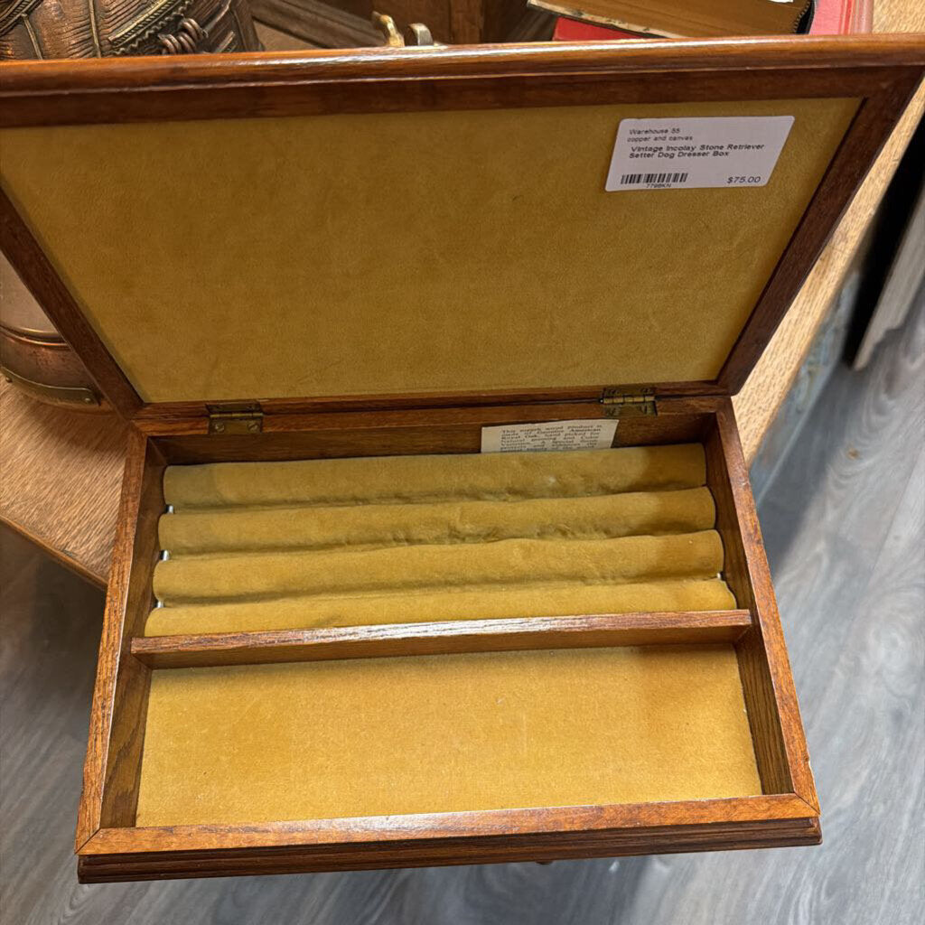 Vintage Incolay Stone Retriever Setter Dog Dresser Box
