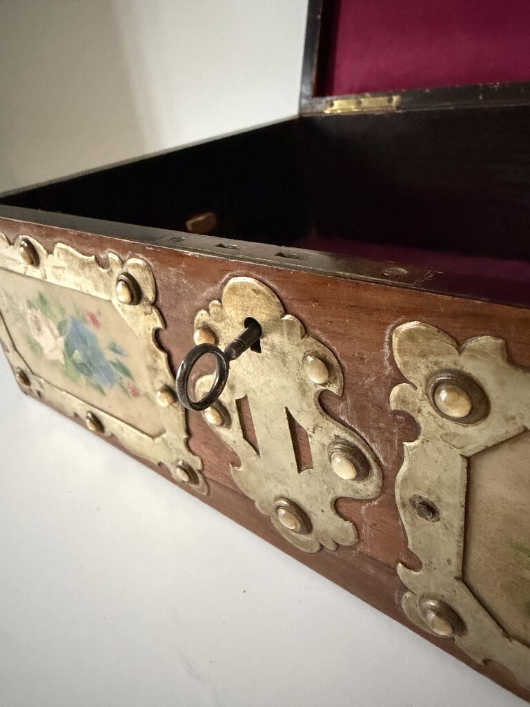 0007 Victorian Hand-painted Silk Lined Box w/ Working Key