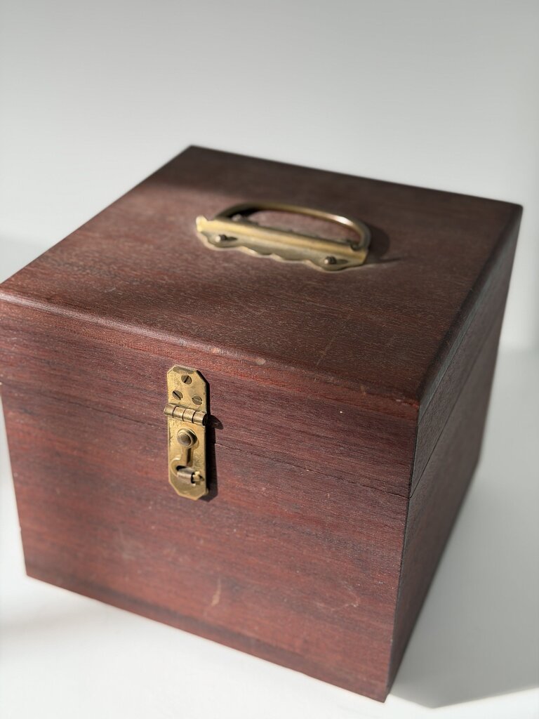 0061 Vintage Wood & Brass square box w/ handle