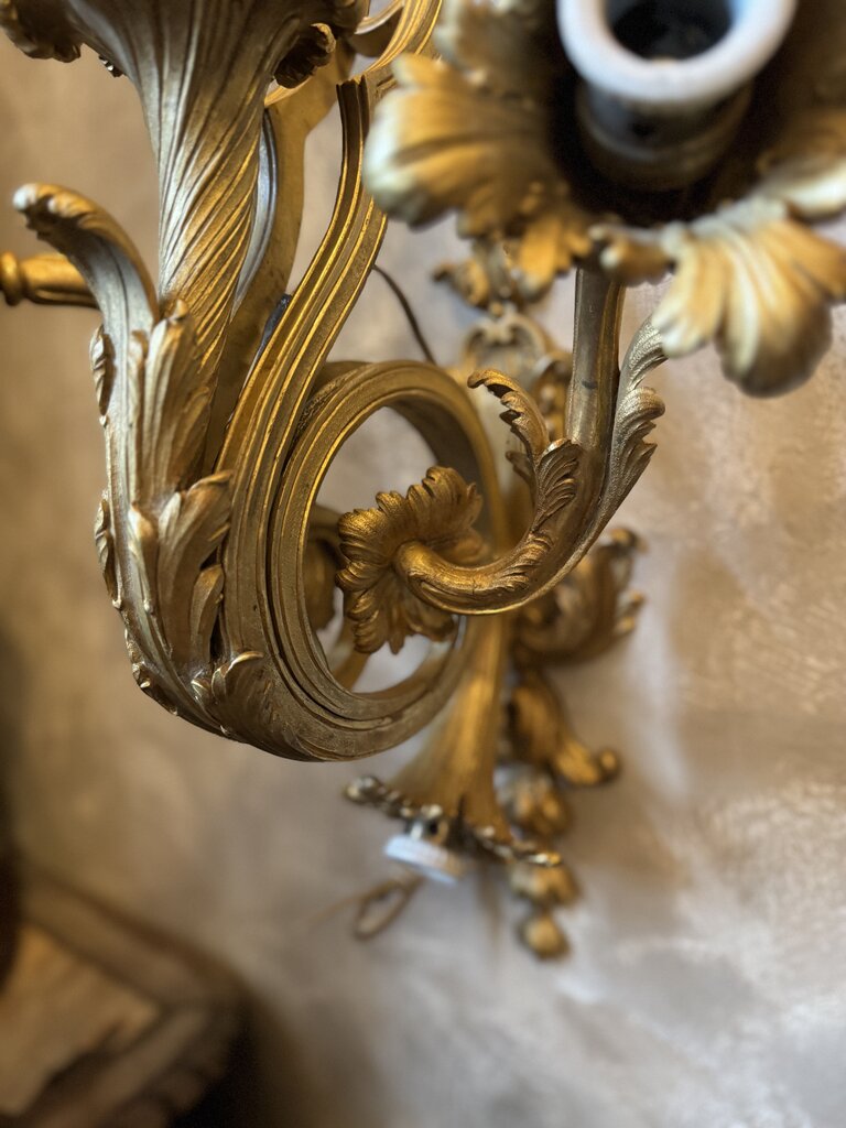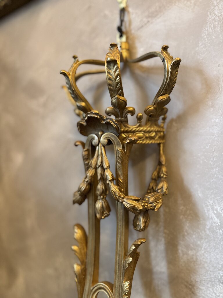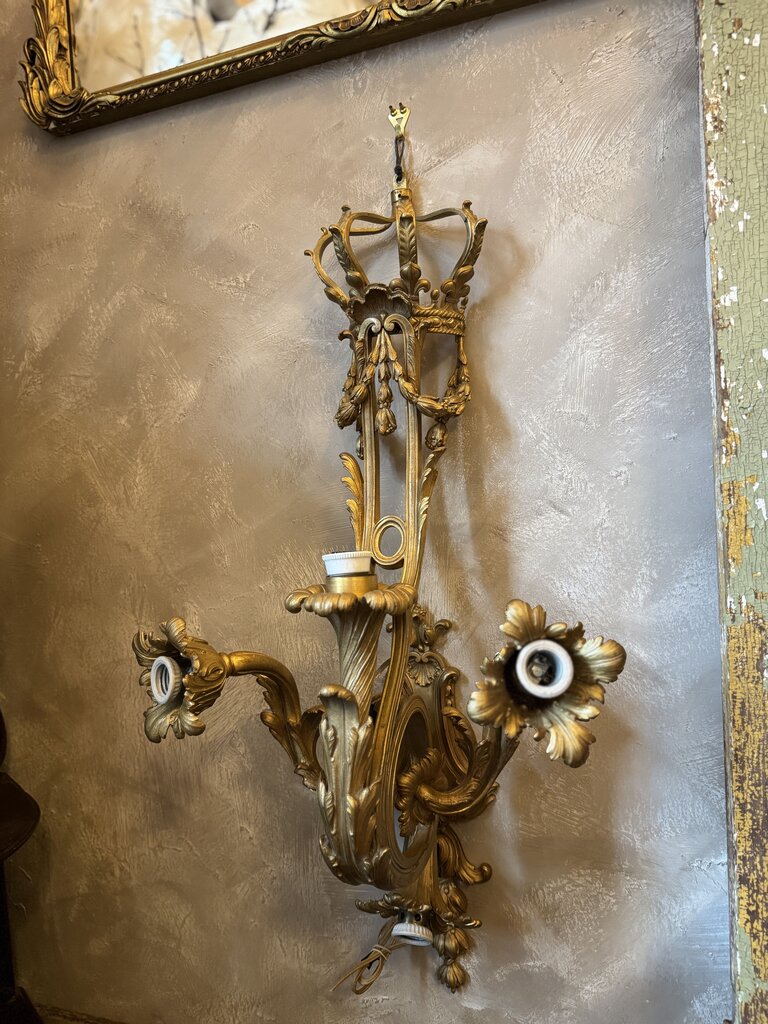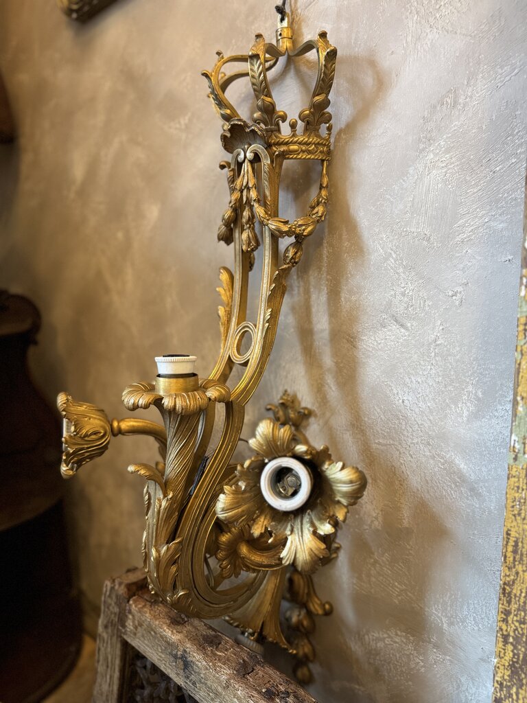 0310 Antique Rococo style wall sconce with crown & scrolling acanthus leaf detail