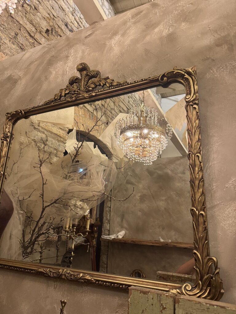 0317 Antique wood gilt wall mirror with fleur de lis top