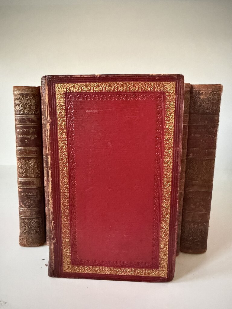 0897 British Essayists Partial Full Red Moroccan Leather 9 Book Set c. 1819