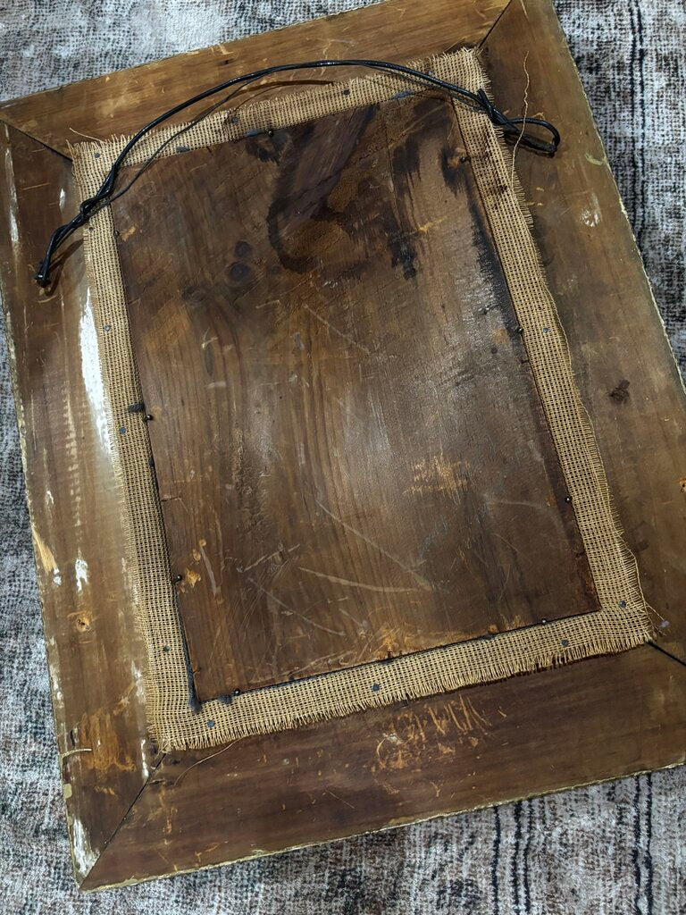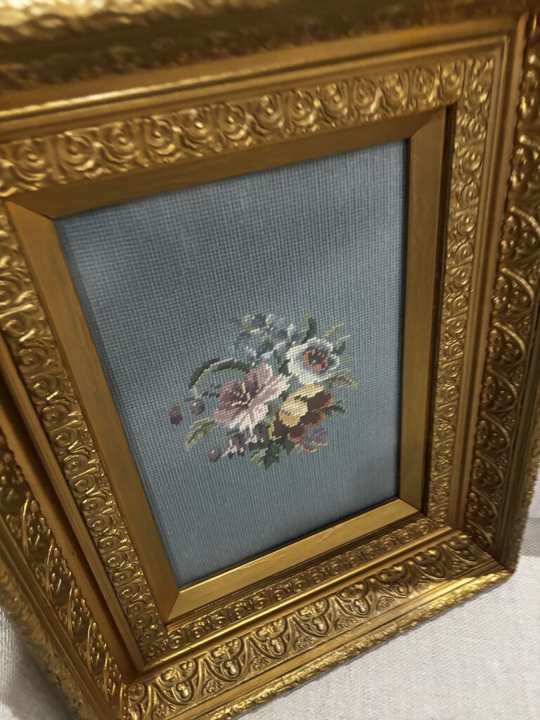 Antique Framed Needlpoint of Roses w/Blue Background 22x17