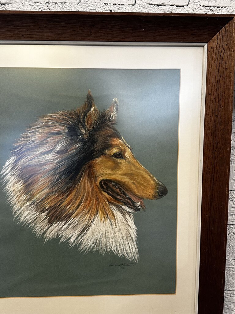 Framed Collie Artwork Penciled + Signed 28T x 24W