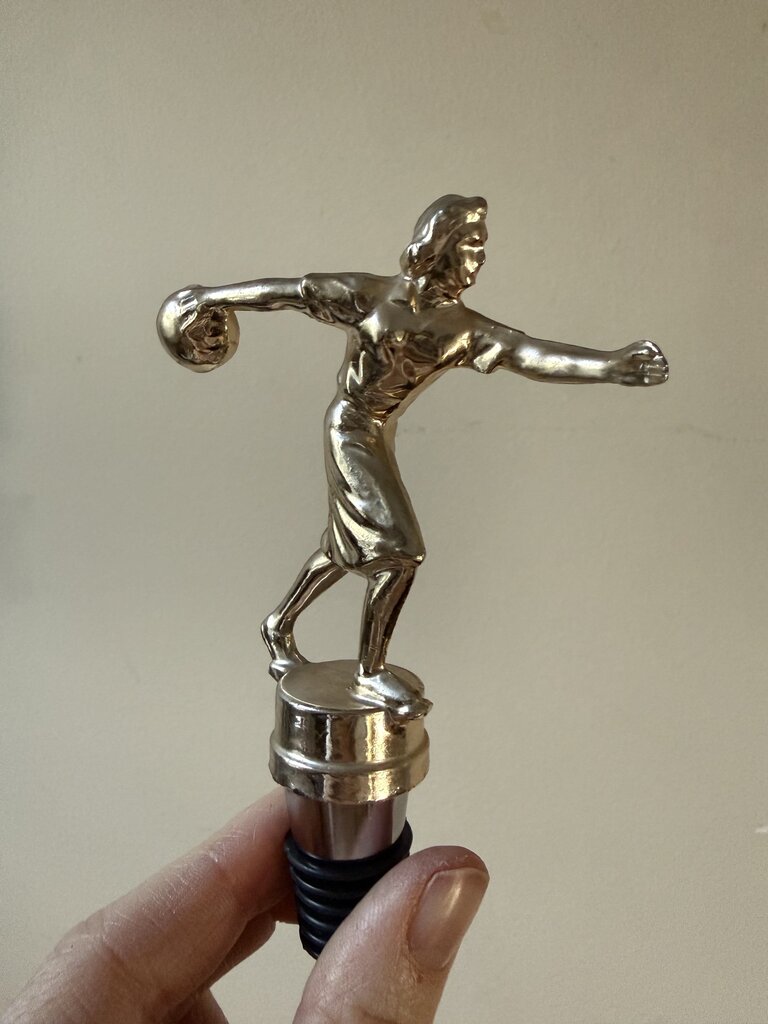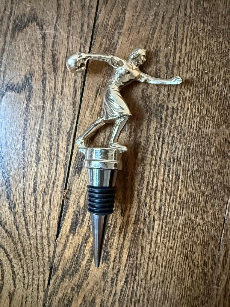Gold Metal Female Bowling Trophy Wine Stopper W1958