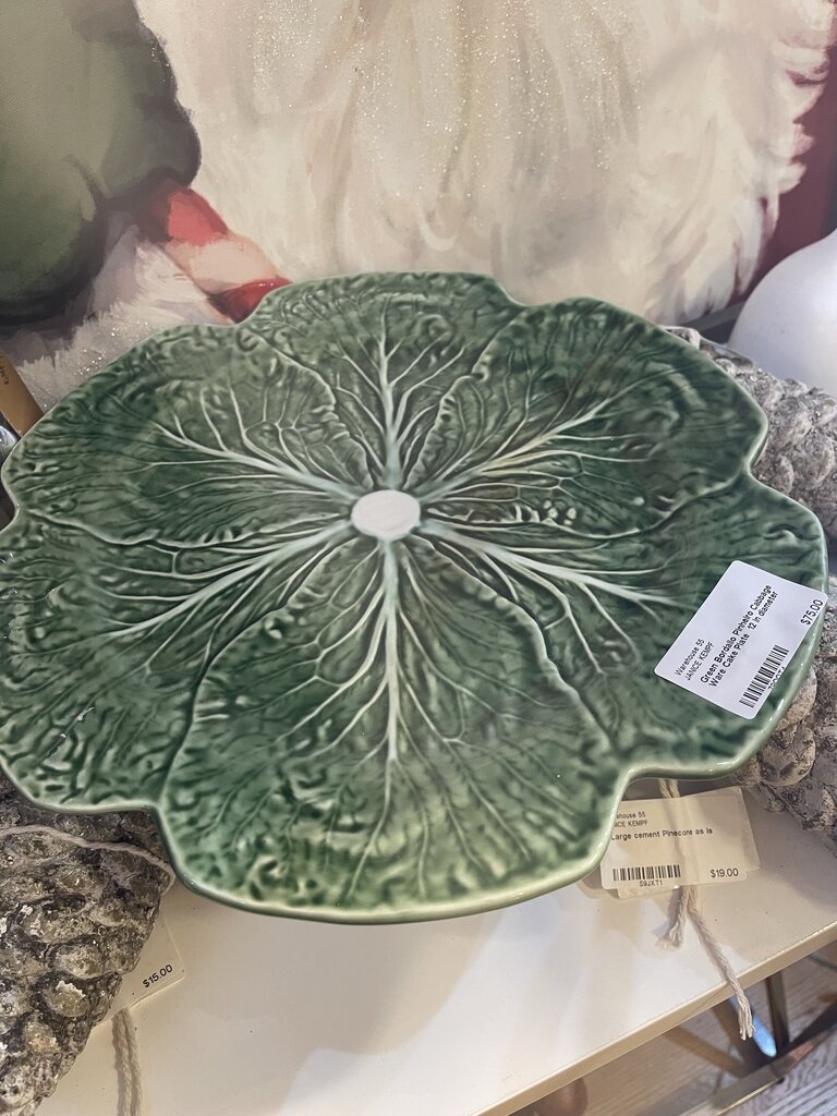 Green Bordallo Pinheiro Cabbage Ware Cake Plate 12 in diameter