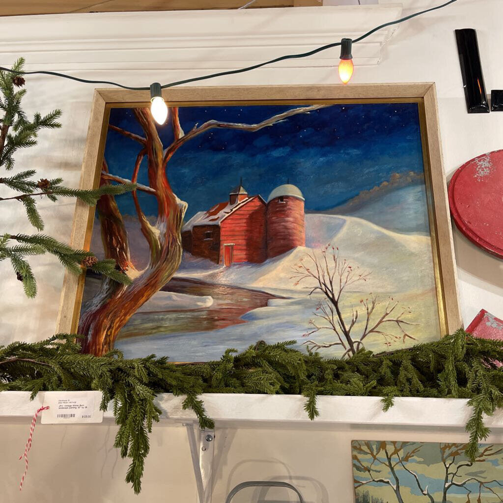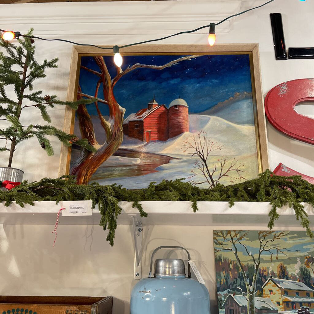 JFV- Vintage Winter Barn landscape painting. 32" by 26