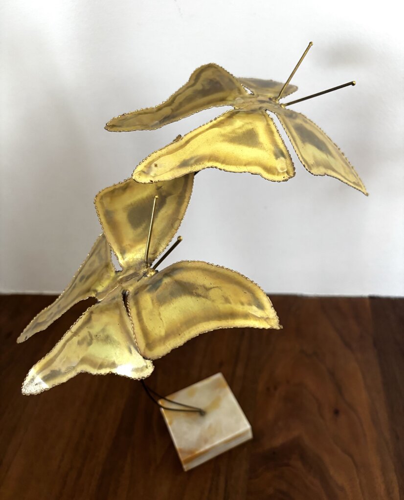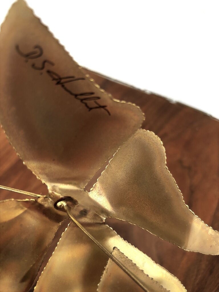 MCM Signed Brass Butterfly Sculpture on Marble Base