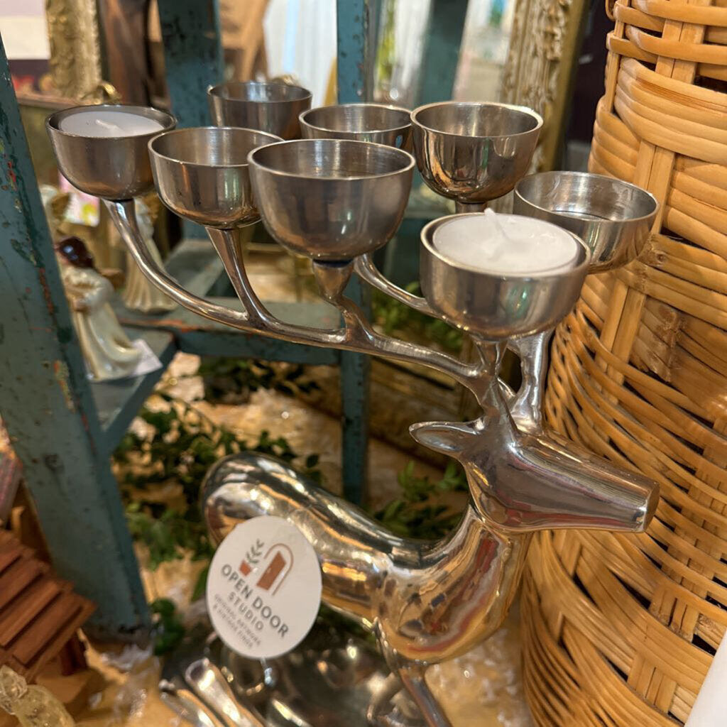 Silver toned deer candle holder