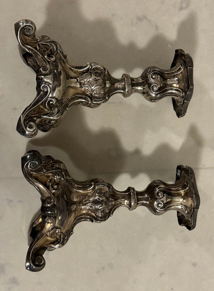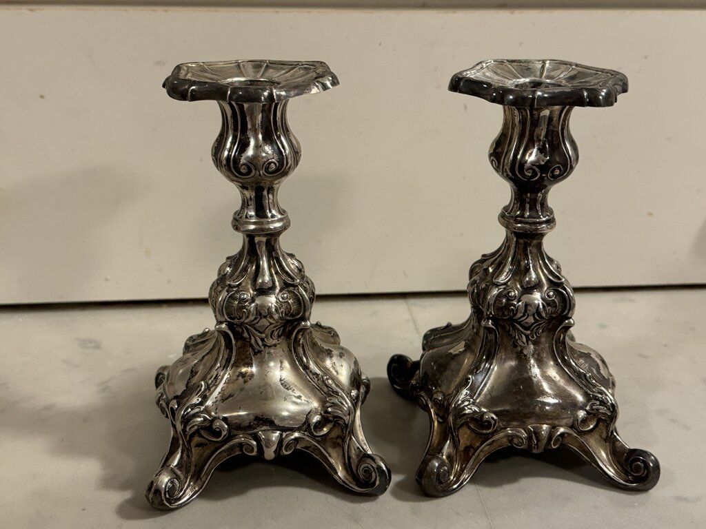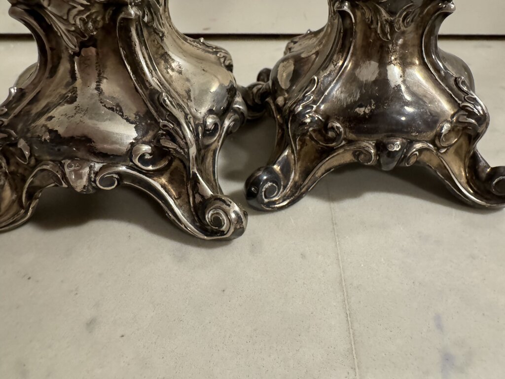 Sweden weighted sterling rococo style 6" tall 3.5" wide at base (pair) three crowns and "s" hallmark