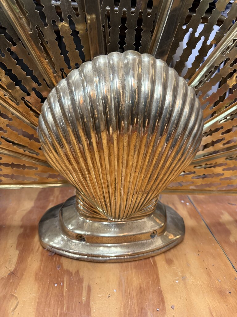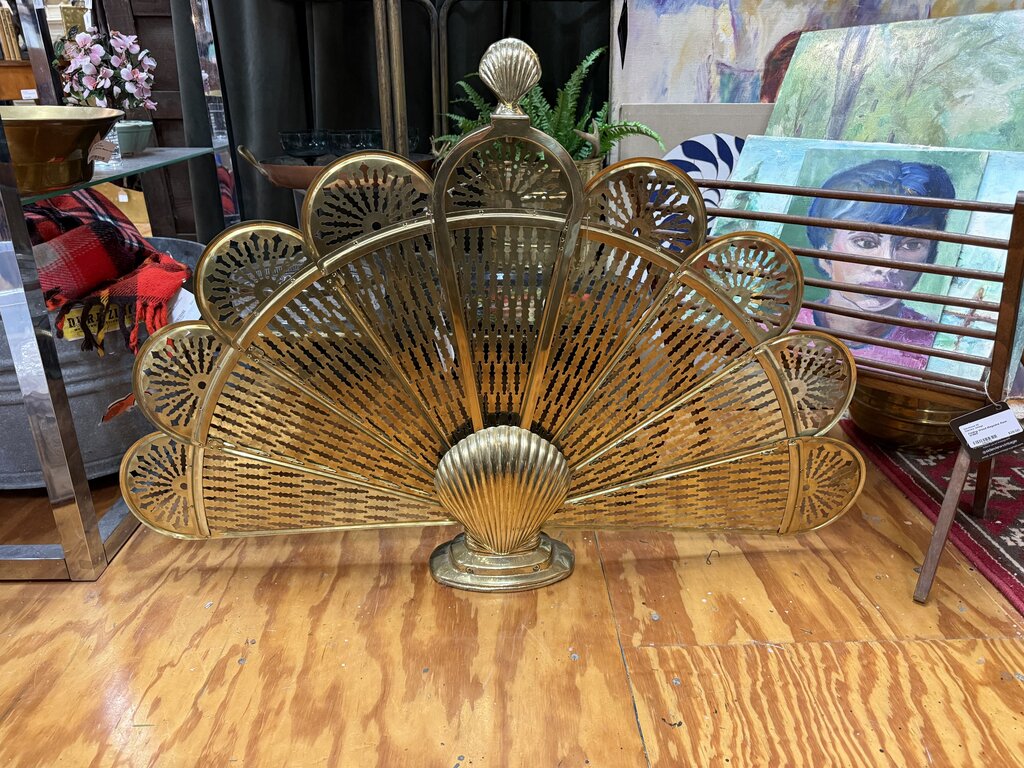 Vintage Brass Peacock Fireplace Screen with Shell 25" tall W2125