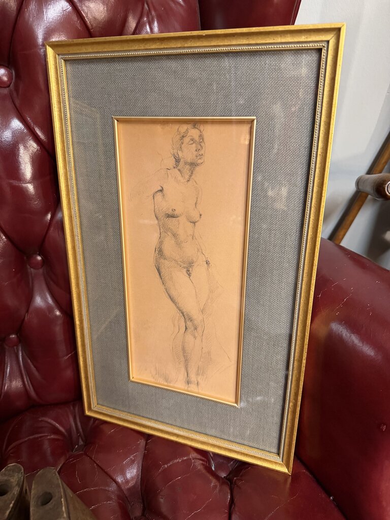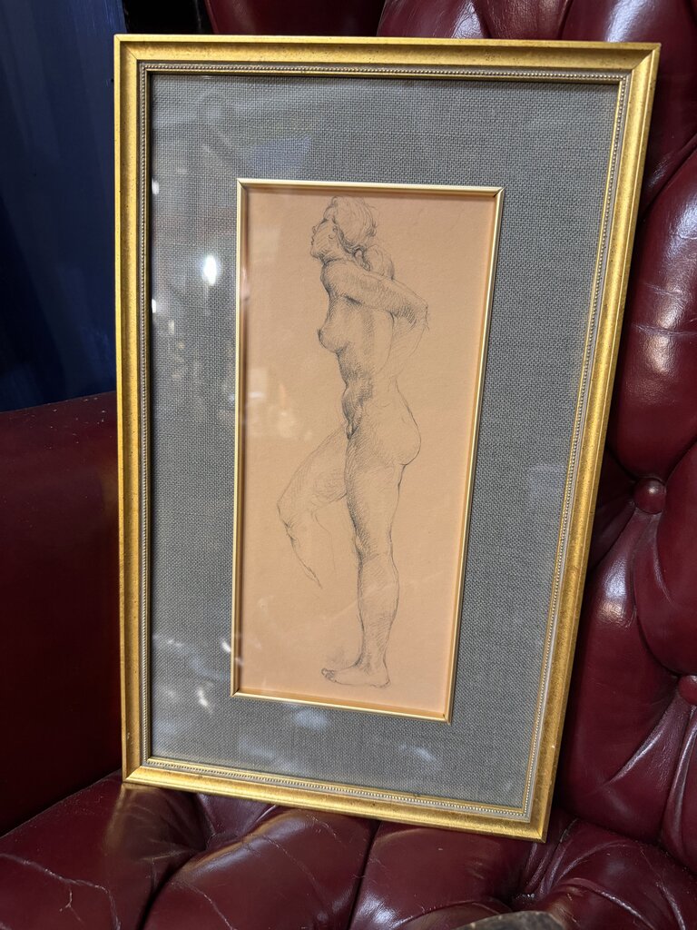 Vintage Gilt Framed Graphite Nude Figure